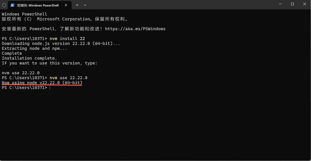 # 安装指令nvm install 22# 使用指令nvm use 22.22.0 AI 代码解读