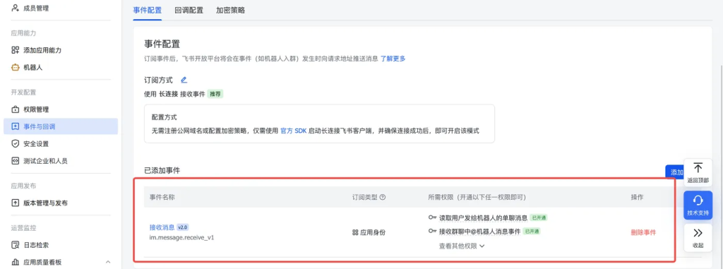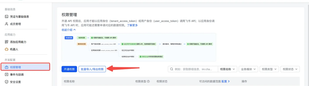 { “scopes”: { “tenant”: [ “aily:file:read”, “aily:file:write”, “application:application.app_message_stats.overview:readonly”, “application:application:self_manage”, “application:bot.menu:write”, “contact:user.employee_id:readonly”, “corehr:file:download”, “event:ip_list”, “im:chat.access_event.bot_p2p_chat:read”, “im:chat.members:bot_access”, “im:message”, “im:message.group_at_msg:readonly”, “im:message.p2p_msg:readonly”, “im:message:readonly”, “im:message:send_as_bot”, “im:resource” ], “user”: [“aily:file:read”, “aily:file:write”, “im:chat.access_event.bot_p2p_chat:read”] }} AI 代码解读