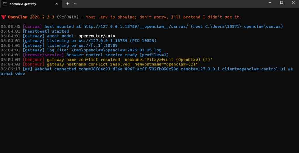安装启动网关后,它会自动新开一个 PowerShell 窗口,都不要关闭。