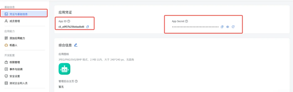 进入飞书开放平台:https://open.feishu.cn/,创建一个应用,并添加机器人应用能力。