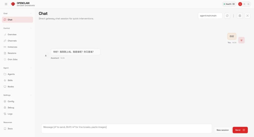 浏览器会自动打开控制台。后续你也可以直接访问:http://127.0.0.1:18789/